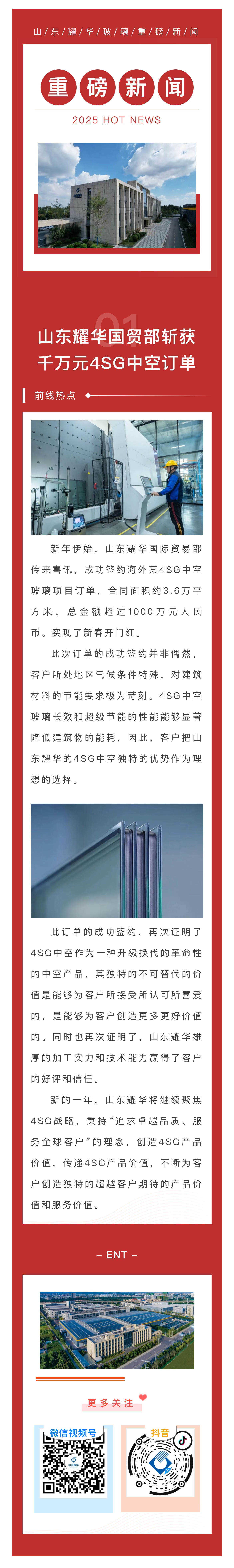 新春開門紅,奮力往前沖|山東耀華國(guó)貿(mào)部斬獲千萬(wàn)元4SG中空訂單